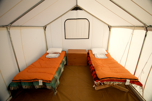 Safari inside Published September 4, 2012 at 640 × 424 in Accommodations Safari-style walk in tents with comfortable cots